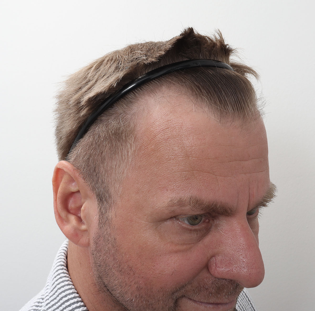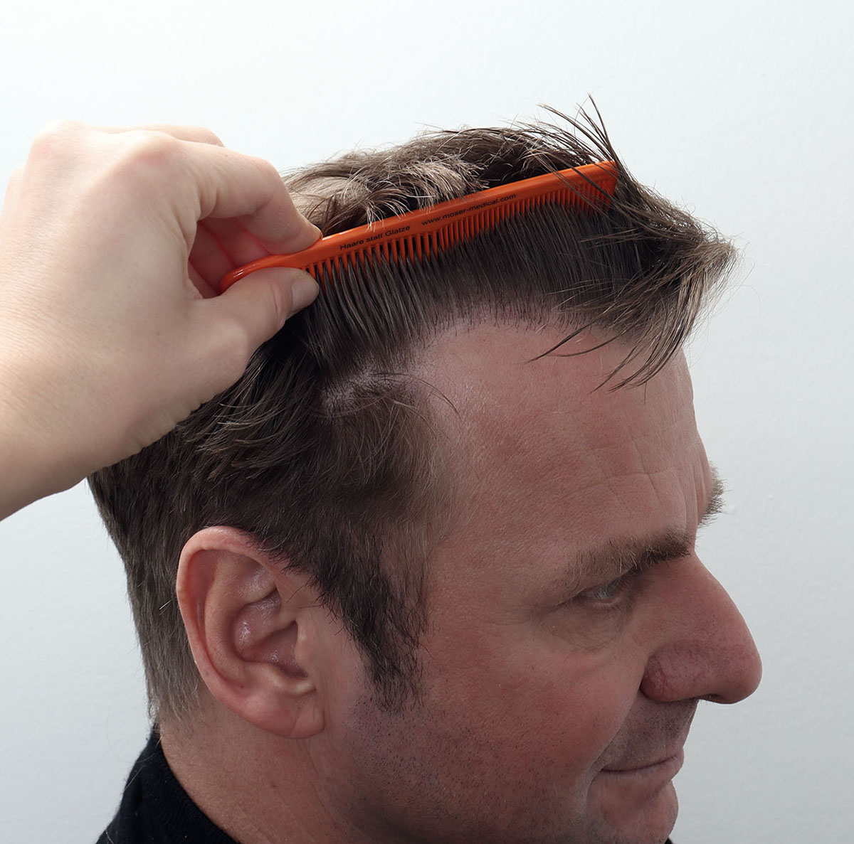 Viorel störte sein immer kahler werdender Tonsurbereich weshalb er sich für eine FUE-Behandlung an dieser Stelle und gleichzeitig bei den Geheimratsecken entschied. Eineinhalb Jahre danach kam er zur Ergebnisbesprechung zeigte sich mit dem Resultat der Haartransplantation rundum zufrieden: "Ich möchte mich in aller Form bei Dr Horacek, Karl Moser und dem ganzen Team für die hochprofessionelle Beratung und Betreuung bedanken. Habe mich sehr wohl bei euch gefühlt. Top Beratung, top Behandlung, alles super gelaufen. Bin mehr als zufrieden!"