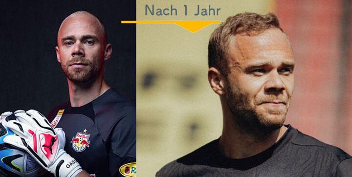 "Ich hab's gemacht" sagt ab Dezember 2023 Tormann Alex Schlager und macht seine Haartransplantation von Beginn an öffentlich. Die Veränderung ist bereits nach wenigen Monaten beeindruckend, mit dem Ergebnis ist er ausgesprochen zufrieden.